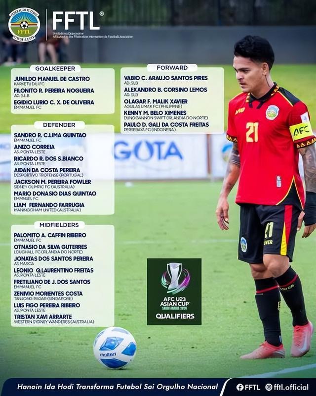 法鲁吉亚、杰克逊·福勒、科雷阿、金塔奥、泽尼维奥、弗雷特里亚诺、菲戈、V.卡纳瓦罗、巴希托和哈维尔都已经是东帝汶成年国家队国脚,他们的身体条件及大赛经验均不差。